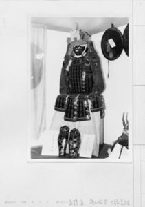 | Title | 素懸白綾威黒皺韋(しぼかわ)包板物腹巻 兜.壼袖.頬当.背板.籠手.臑当.杏葉.佩楯付 |