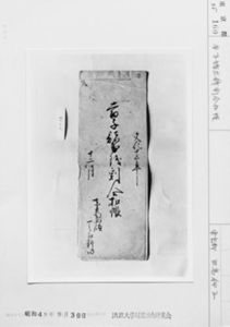 | 78 | 借用申銀子之事(銀札100目) Rekihaku Collection Database (Collections Database of the National Museum of Japanese History) H-1569-1888 |