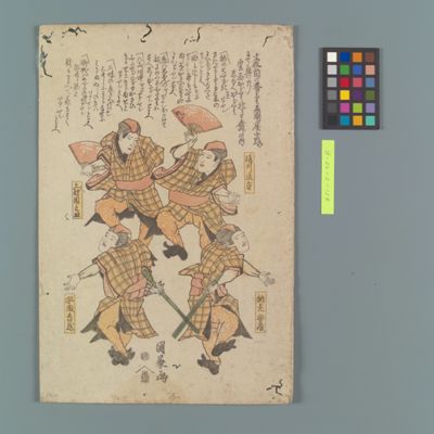 | 2 | 〈見立 雁金文七 岩井粂三郎、布袋市右衛門 松本幸四郎、雷庄九郎 市川団十郎、安の平兵衛* Rekihaku Collection Database (Collections Database of the National Museum of Japanese History) H-22-1-15-7 |
