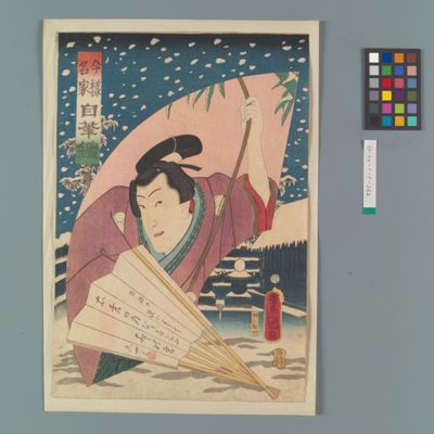 | 12 | 浄瑠璃八景 新内明がらす 庭前の泡雪 Rekihaku Collection Database (Collections Database of the National Museum of Japanese History) H-22-1-1-269 |