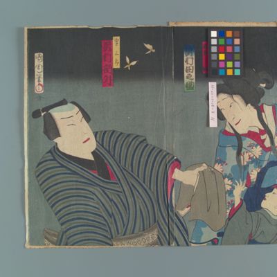 | 38 | 忠臣蔵三段目 勘平 沢村訥升、おかる 坂東三津五郎 Rekihaku Collection Database (Collections Database of the National Museum of Japanese History) H-22-1-18-83 |