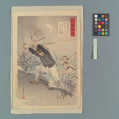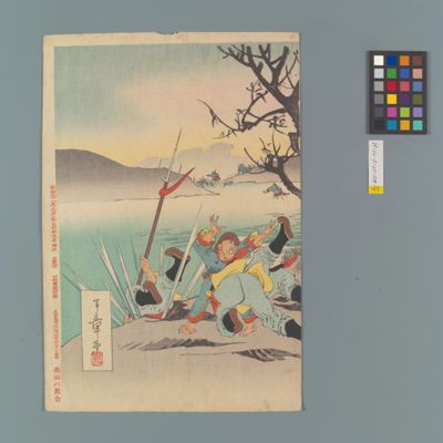 | 13 | 征清美談名誉鑑 松崎大尉安城渡に勇戦する図 Rekihaku Collection Database (Collections Database of the National Museum of Japanese History) H-22-1-27-1 |