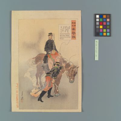 | 15 | 征清美談名誉鑑 騎兵木村源松氏自己ノ馬を浅川大尉に進め危難を免しむる図 Rekihaku Collection Database (Collections Database of the National Museum of Japanese History) H-22-1-27-12 |