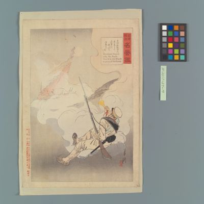 | 18 | 征清美談名誉鑑 砲兵一等卒沢頭宇之助氏病中来襲の敵を禦く図 Rekihaku Collection Database (Collections Database of the National Museum of Japanese History) H-22-1-27-15 |
