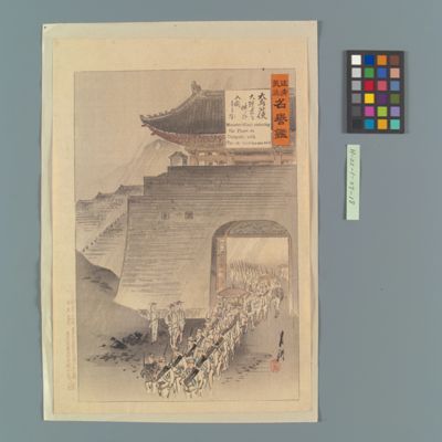 | 34 | 日清戦争平壌玄武門組上ヶ五枚続 Rekihaku Collection Database (Collections Database of the National Museum of Japanese History) H-22-1-29-8 |