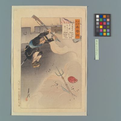| 23 | 征清美談名誉鑑 原田重吉平壌玄武門を挑する図 Rekihaku Collection Database (Collections Database of the National Museum of Japanese History) H-22-1-27-20 |